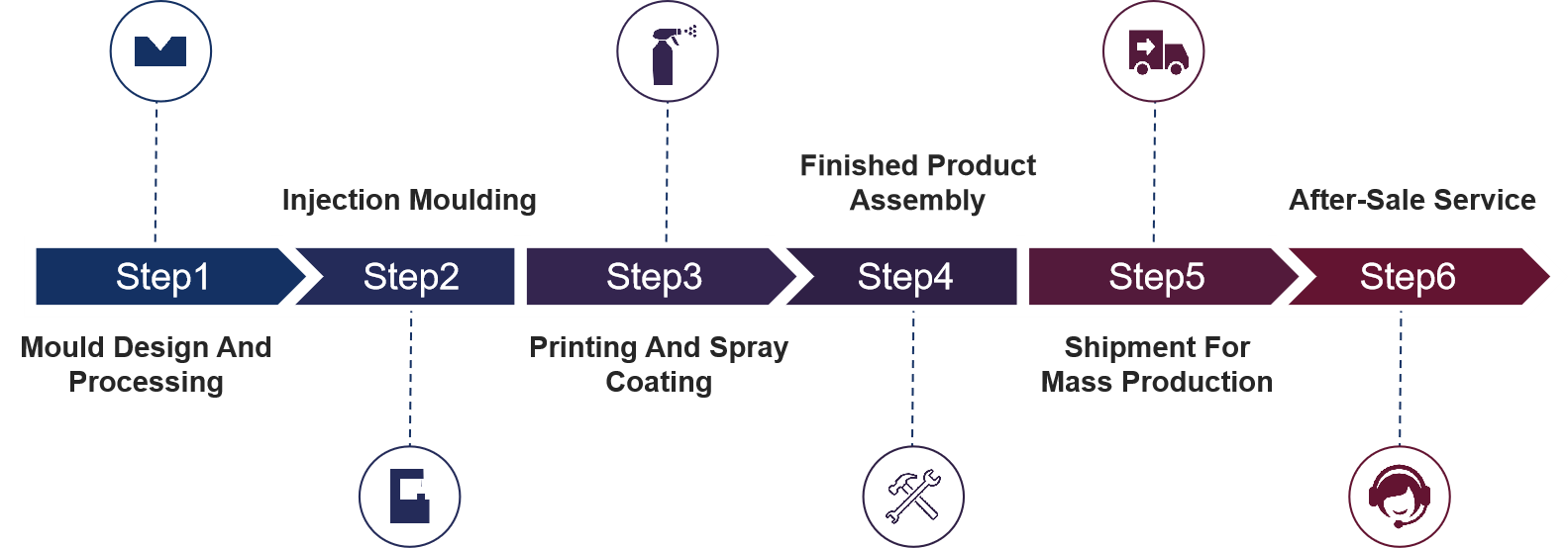 We supply one-stop solution of plastic injection system, including earlier stage product design, mould design and manufacture, injection moulding, printing, assembly and test.